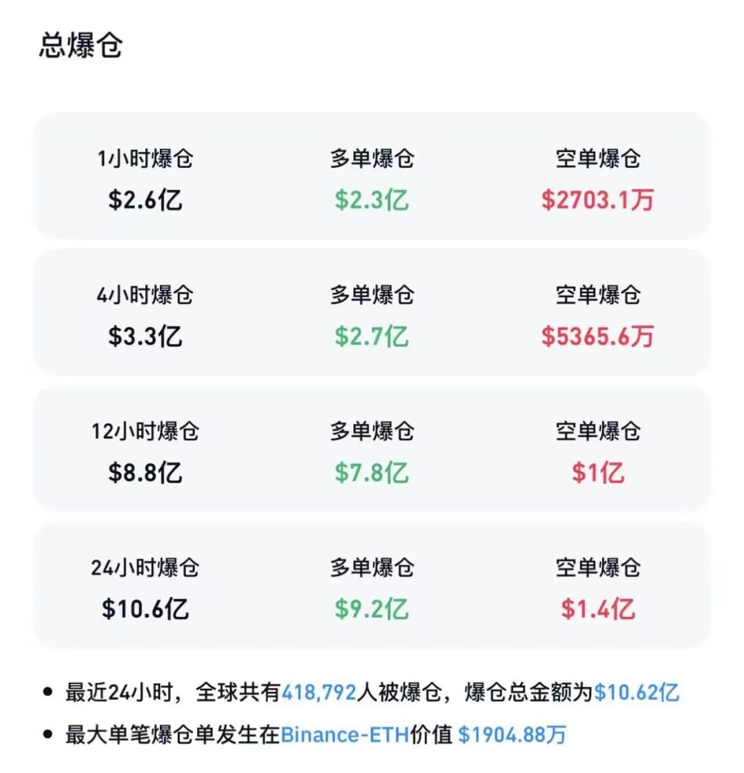 截至发稿,比特币跌超3%,以太坊跌近10%,狗狗币跌15%。Coinglass数据显示,24小时内,加密货币全网爆仓人数超过24万人,爆仓金额超过5亿美元。